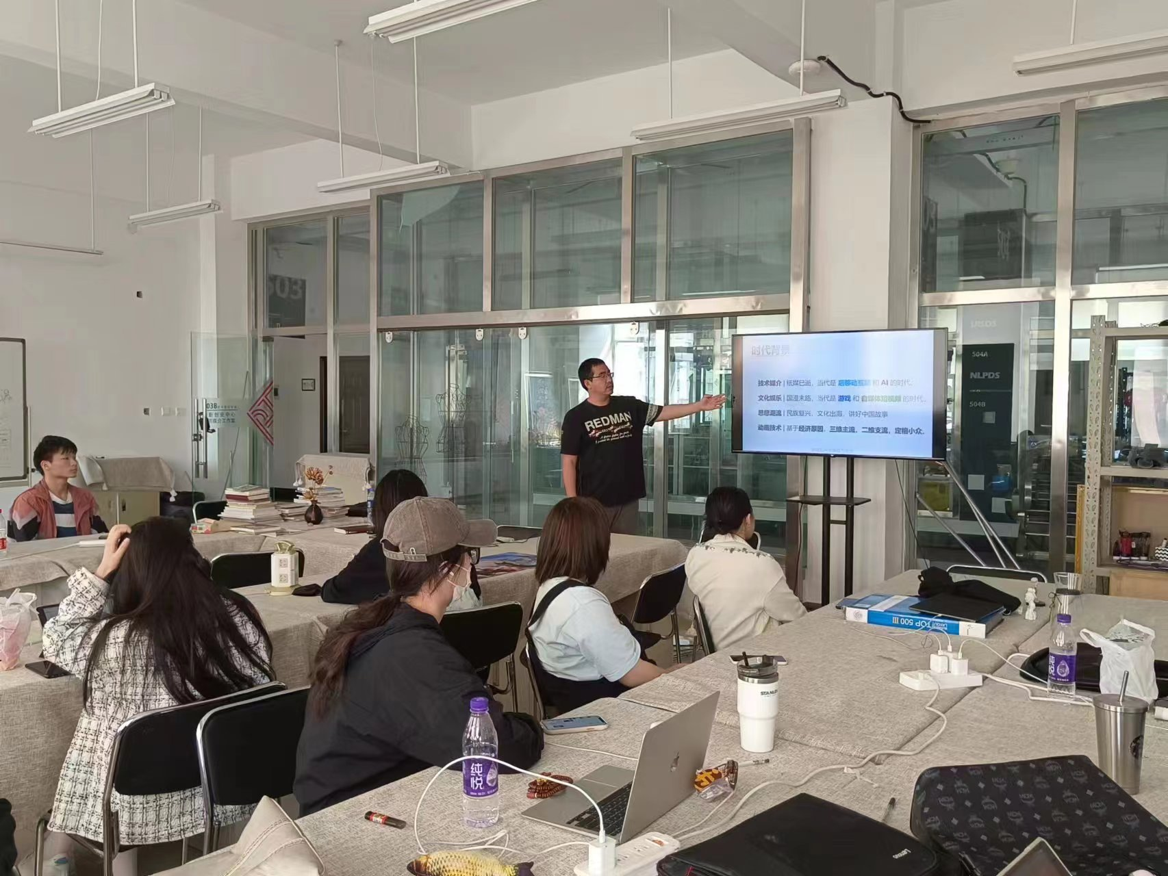 陈维强老师分别从思想潮流、技术媒介、文娱产业、动画行业等方面阐述时代背景,与学生一起分析相关现实状况与背后成因;又从动画专业技能培养出发,结合时代背景与行业实际需要,与学生一起分析规划二维动画工作室学生未来的职业岗位目标;最后与学生一起展望未来一年到毕业的学习、实践、升学、就业等事项的时间安排,解释学校、学院相关规定与要求,列出注意事项并提出诚恳建议。