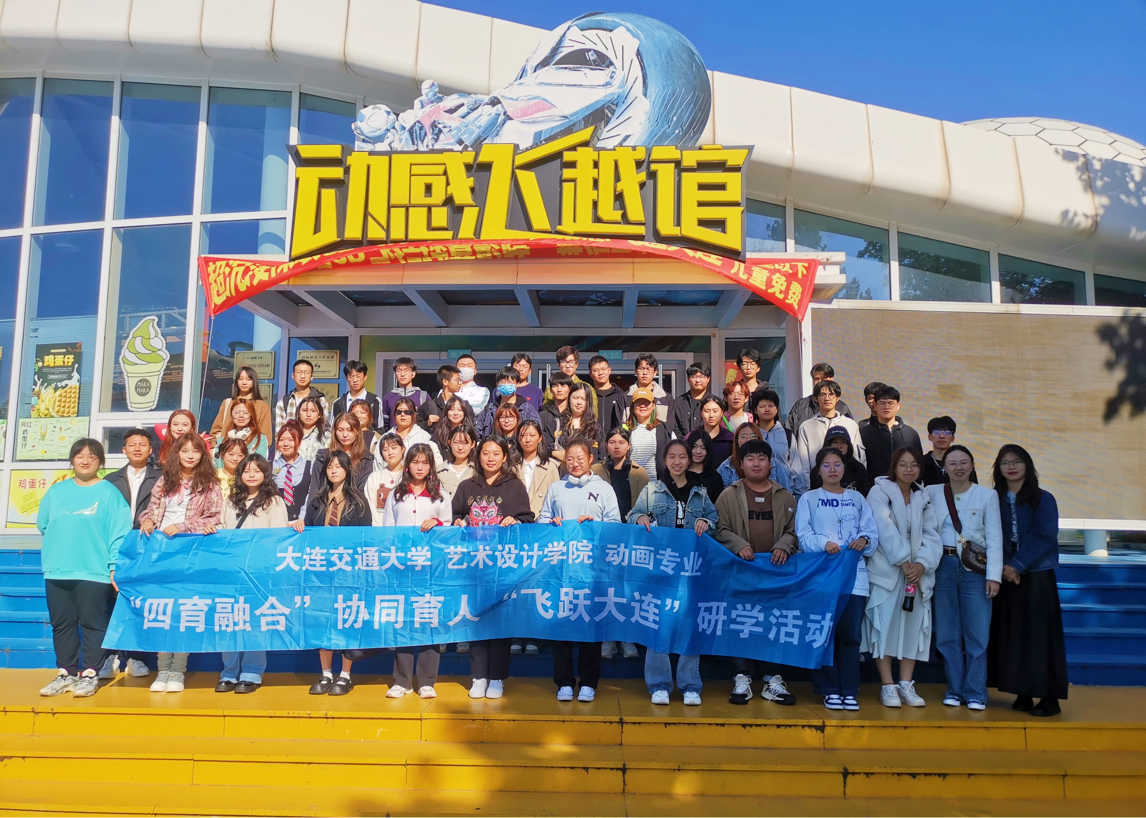 “四育融合”校企实践基地——大连博涛文化科技股份有限公司进行专业研学活动,本次研学共分为四个部分:公司考察、专业讲座、参观神秘巨兽工厂、360度球幕观影和VR体验,纪元元老师和陈维强老师带队。