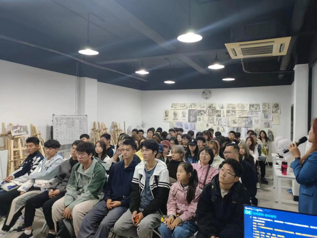 参观结束后,李沫函总经理为同学们作了专业讲座,通过介绍企业打造的天幕影院、4D影院、AI场景等优秀案例,介绍了AI人工智能技术和AI绘画,及AI在学习和工作中的重要性。