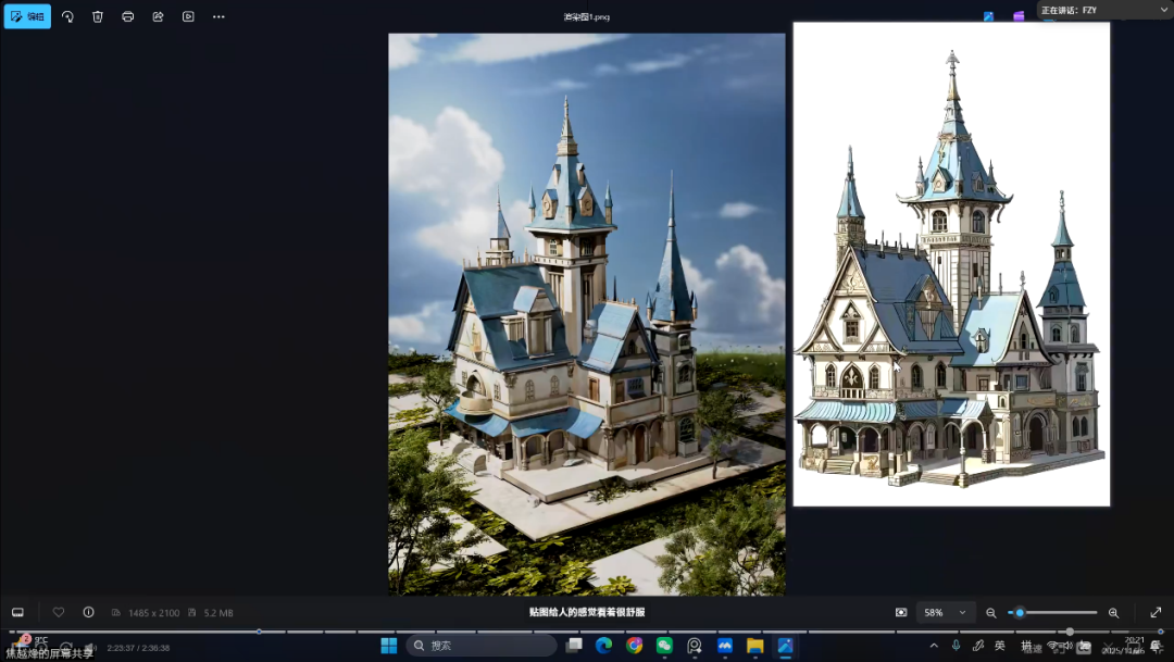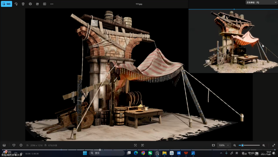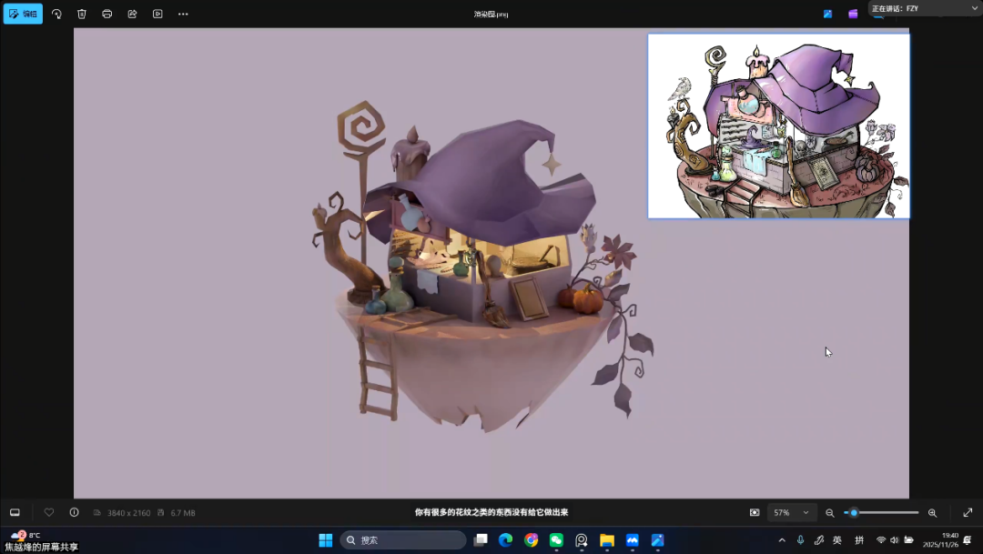 会议伊始,张琪老师介绍了本次活动的目的,即通过企业一线标准对课堂成果进行把关,使同学们在模型、贴图、渲染等关键环节中进一步校准方向。随后,冯志远老师从作品整体呈现、空间氛围塑造到细节技术实现等方面展开深入分析。