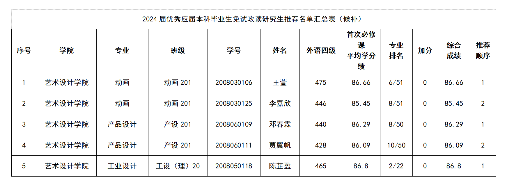 韩国色情 2024届优秀应届本科毕业生免试攻读研究生推荐名单公示