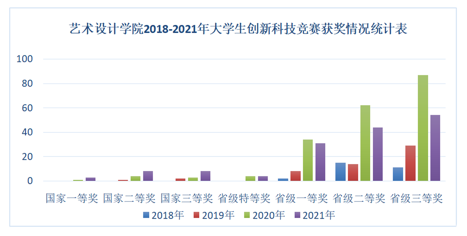 中心依托“工作室制”,2018年以来开展大学生创新创业项目申报,平均每年参加申报学生人数300余人,学院人数占比70%左右。截止到目前中心组织学生参加各类国家级、省级、企业级创新创业赛事60余项,参与人数约5000余人次。中心教师参与创新创业为内容的培训讲座20次。尤其在2021年举办“纪念建党100周年,创新创业成果展”共展出作品100余张,受到参观的校领导以及广大师生一致好评。