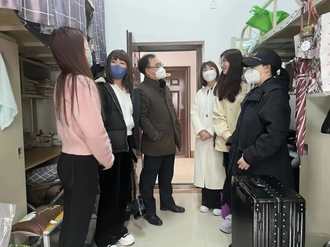 3月5日下午2点,学院领导和老师们来到学生公寓,他们和蔼可亲的态度及幽默风趣的谈吐拉进了我们的距离,给我们送来了温情。领导们仔细询问了我们对新环境的适应状态,问我们对于新学期的计划并鼓励我们要不畏艰难。领导们的每一言每一语无不体现着对我们的关心,亲情般的关怀和温馨沁入我们的心中。
