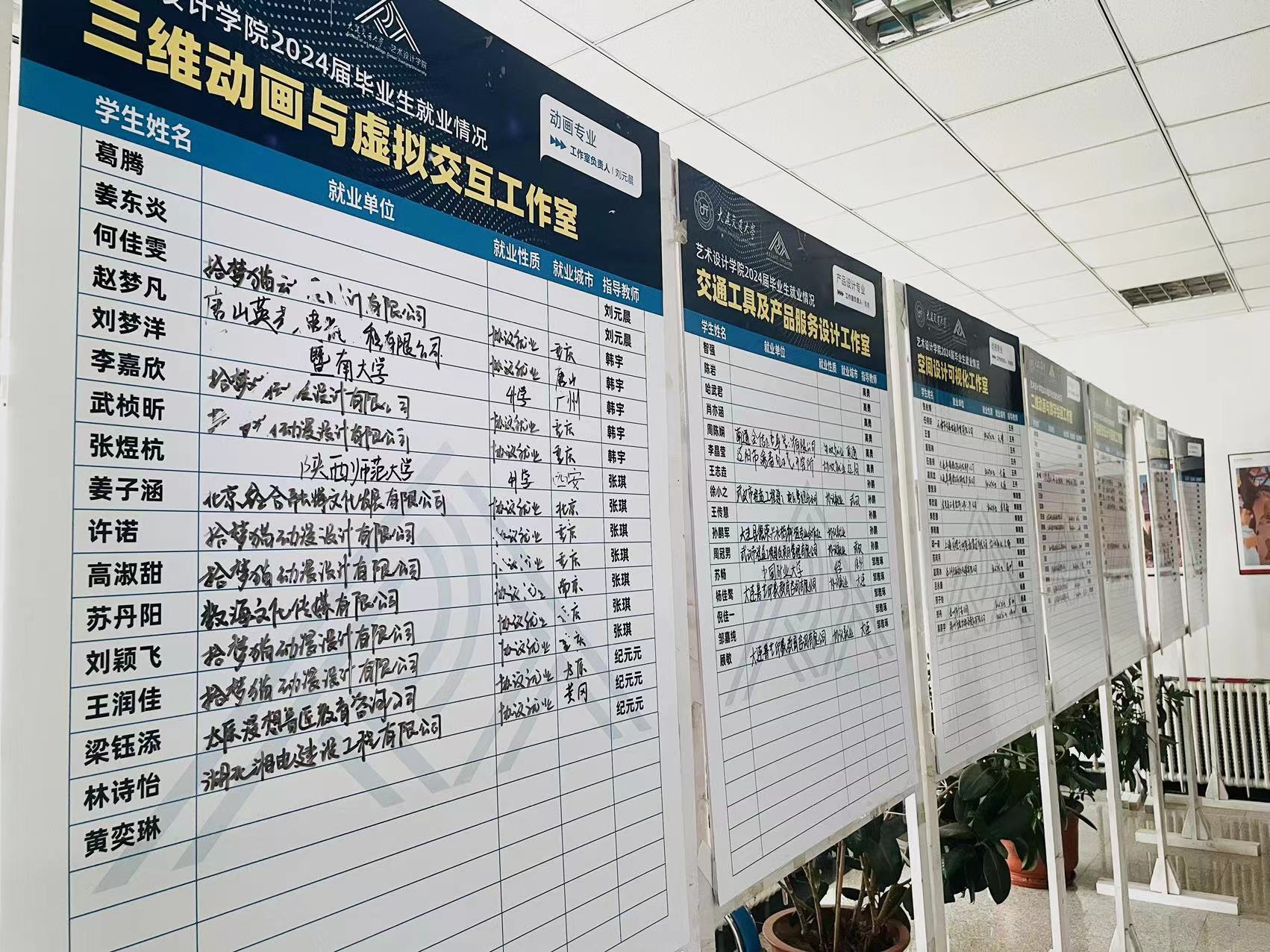 学院的一楼大厅、会议室分别设立了2024届毕业生就业展板,对已就业学生进行公开展示,包括学生姓名、工作单位、指导教师等信息,每周进行信息更新。经过全院上下不懈努力,截至10月23日,学院就业率提升较去年同期提升了25个百分点。