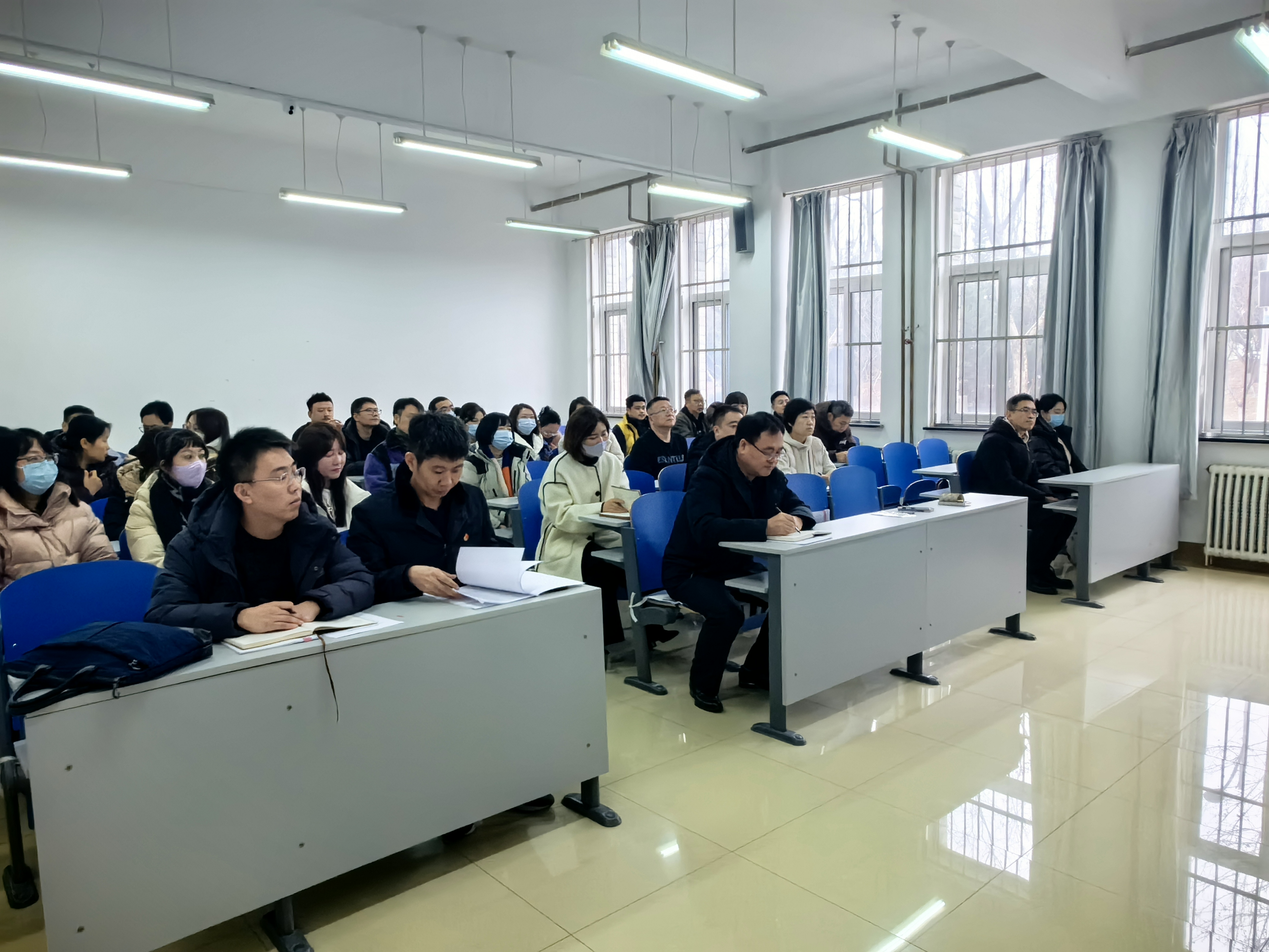 全体教职工出席会议,会议由王丹同志主持。