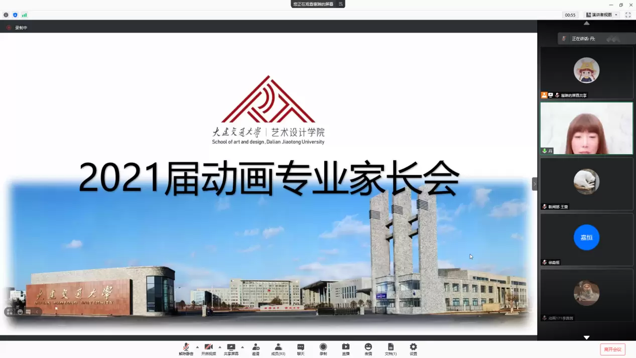 在线上召开2021届动画专业学生家长会。学院班子成员、动画专业韩宇教授出席会议、2021届动画专业全体毕业生和家长参加会议。会议由2021届毕业班辅导员付惠琳主持。