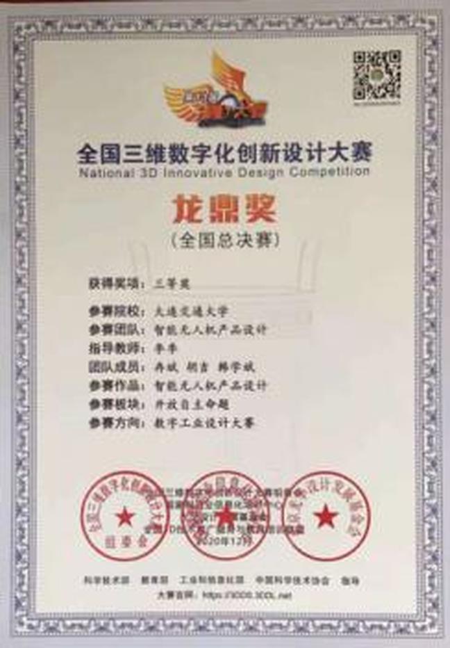 指导学生获得“三维数字化创新设计大赛”国赛三等奖