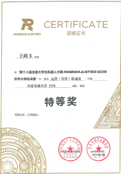 辽宁省普通高等学校大学生移动应用开发大赛一等奖。