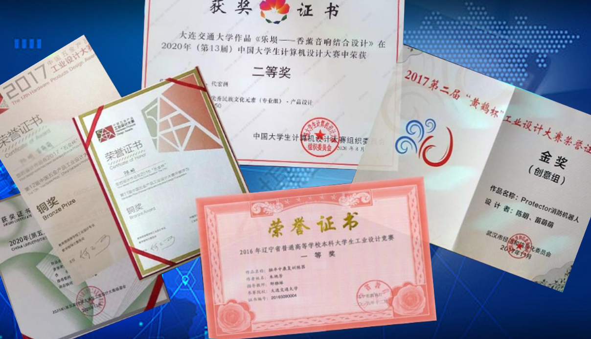 工业设计专业学生近几年获得的部分重要奖项有: